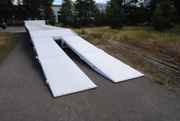 раскладывающиеся трапы с гидроприводом подъёма (опускания) с углом въезда 6 грудусов,